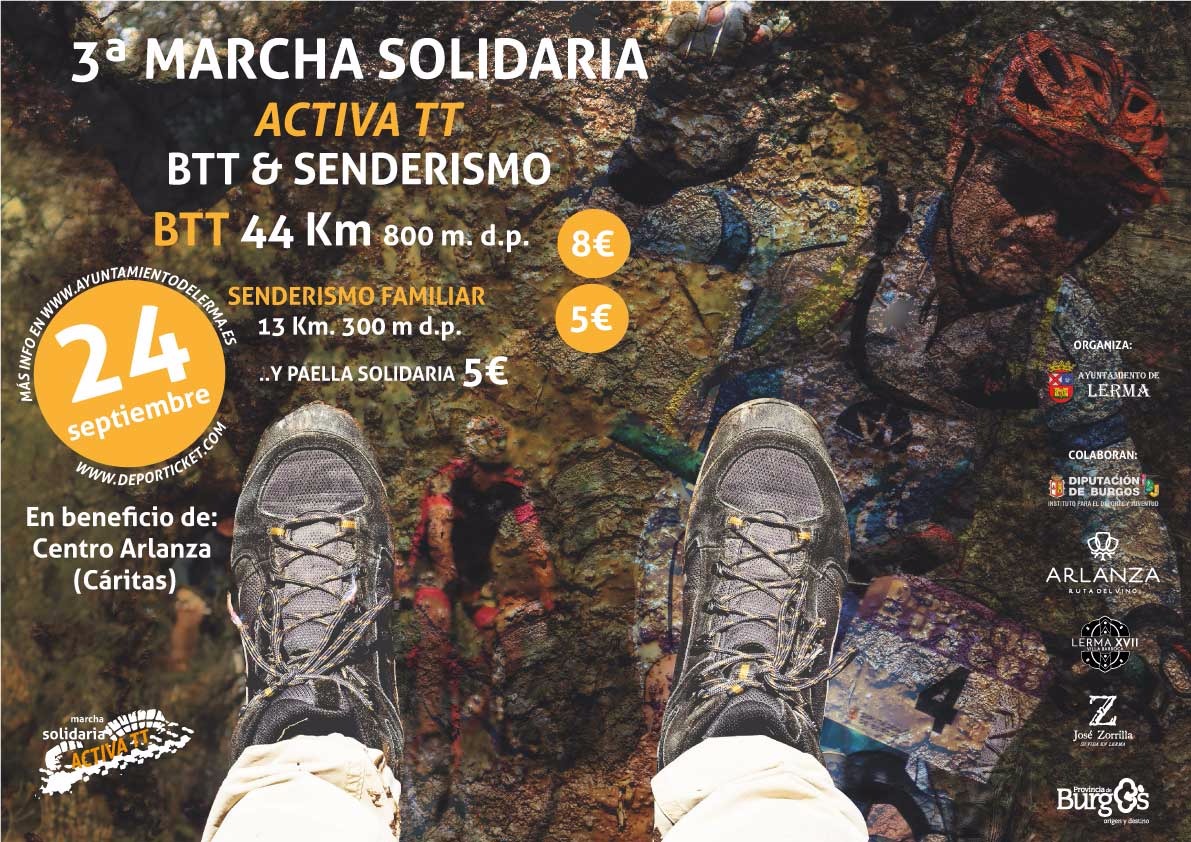 La Marcha Solidaria ACTIVA-TT 2017 se llevará a cabo el domingo 24 de septiembre de 2017, con salida en la Plaza Mayor y meta en el Polideportivo Municipal. A las 9:00 h. se empezará la recogida de dorsales. La salida de la prueba será a las 9:30 h. para los senderistas y a las 10.00 h. para BTT. Después de la prueba tendrá lugar una paellada popular solidaria.