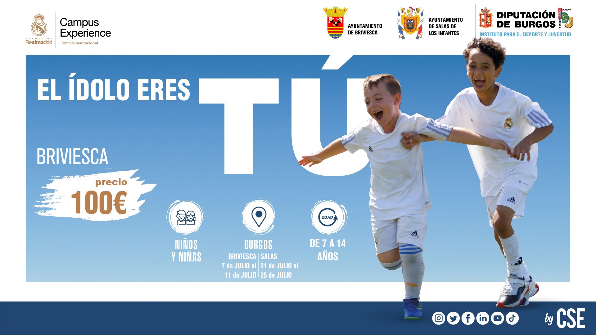 El Instituto Provincial para el Deporte y Juventud de la Diputación de Burgos, junto con el Ayuntamiento de Briviesca organizan una nueva edición del Campus de Fútbol “Experience” de la Fundación Real Madrid, una cita deportiva que cumple ya su decimoséptima edición y que vuelve a ofrecer a los más jóvenes una oportunidad única para disfrutar del fútbol, mejorar su técnica y compartir valores como el compañerismo, el esfuerzo y el respeto.
