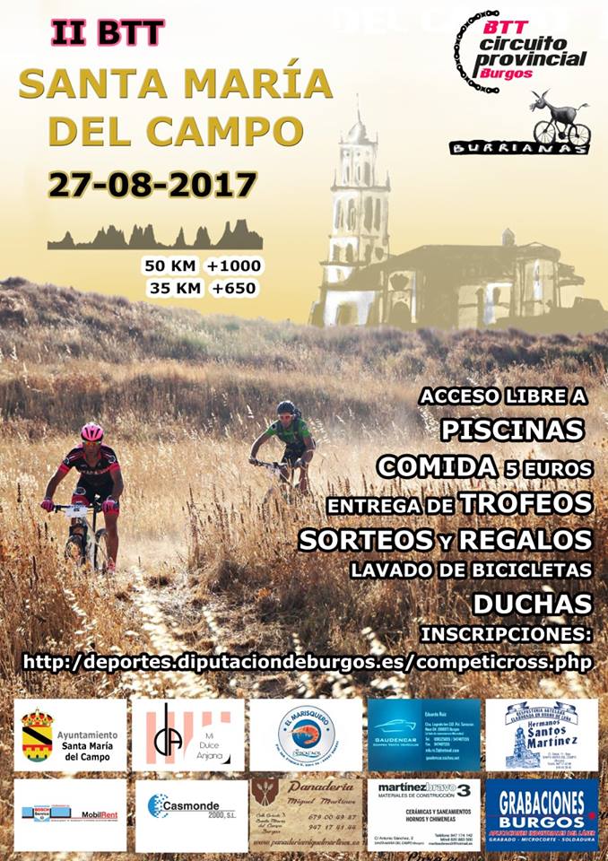 La II edición de la BTT Santa María del Campo arranca de nuevo y este año lo hacen con circuito renovado. Las opiniones de los bikers han sido escuchadas y han preparado un nuevo recorrido que no dejará a nadie indiferente. Tierra de campos, pinares escondidos, choperas infinitas, cuestas que os harán dudar... son algunas de las sorpresas a las que os vais a enfrentar.