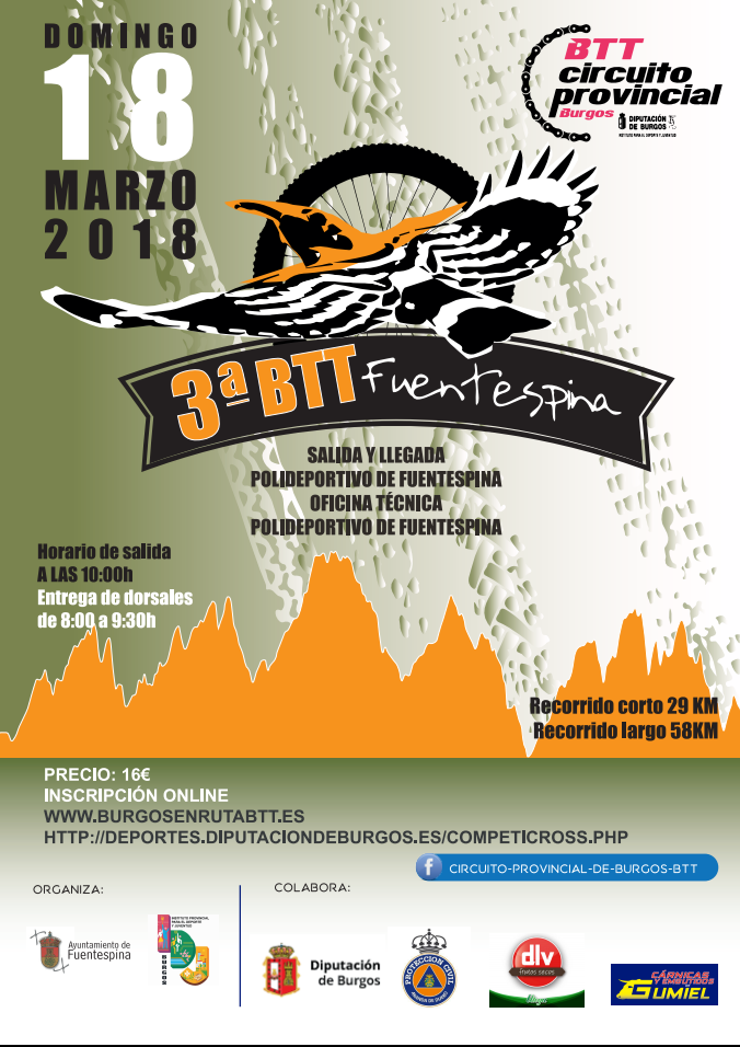 Ya puedes realizar tu inscripción en la marcha que dará el pistoletazo de salida de la VIII edición del Circuito Provincial BTT de Burgos. La III BTT La Abubilla de Fuentespina, marcha con zonas técnicas, sencillas y divertidas para empezar esta temporada.