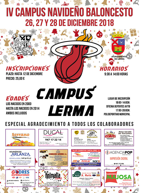 La celebración de este campus navideño viene del éxito de pasadas ediciones y de todo el movimiento de baloncesto que se está dando en Lerma en las últimas temporadas. Además, para este curso 2018-2019, contamos con 4 equipos de baloncesto escolar que están participando en los Juegos Escolares de Burgos.