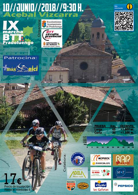 El Club Montañeros de Pradoluengo colabora con el Ayuntamiento de Pradoluengo en la organización de la IX marcha BTT Acebal-Vizcarra, dentro del VIII Circuito Provincial de BTT 2018 del Instituto Provincial para el Deporte y Juventud de la Diputación de Burgos.