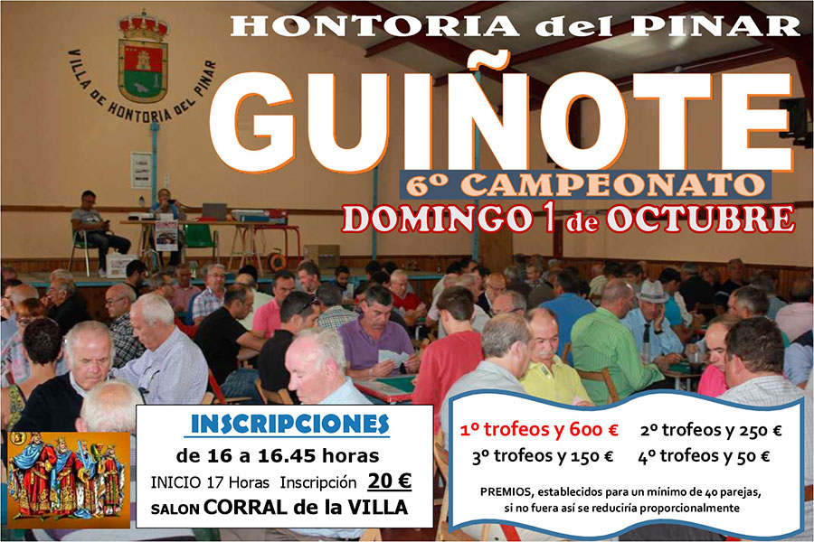 Sexta edición de este torneo de Guiñote a celebrar en Hontoria del Pinar. La anterior edición de 2016, acudieron un total de 64 parejas, llegadas de todos los puntos de la Comarca de Pinares de Burgos y Soria.