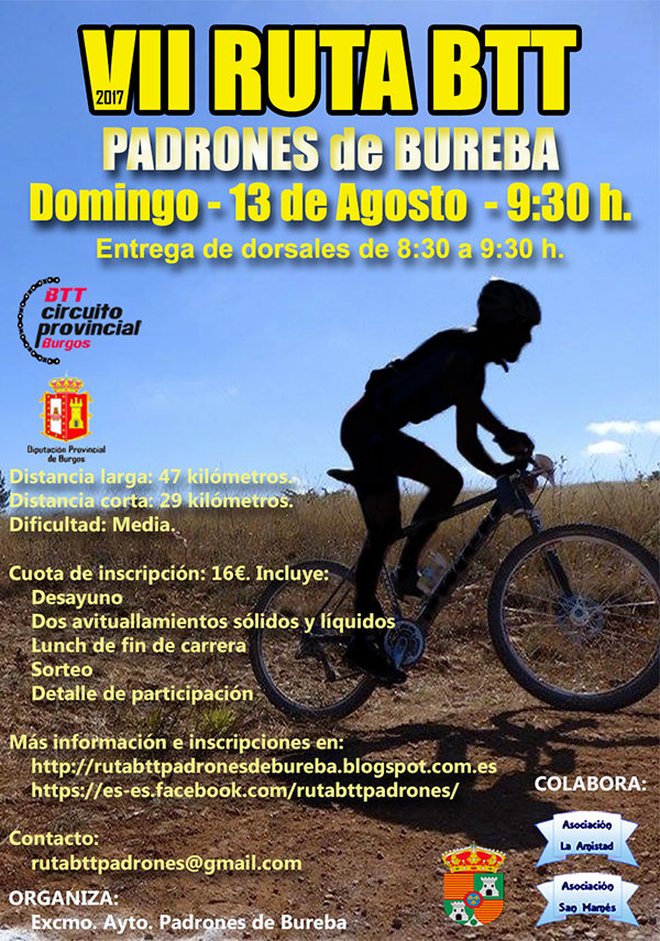 15ª prueba del Circuito Provincial de BTT. El domingo 13 de agosto se celebrará la séptima edición de la BTT de Padrones de Bureba.