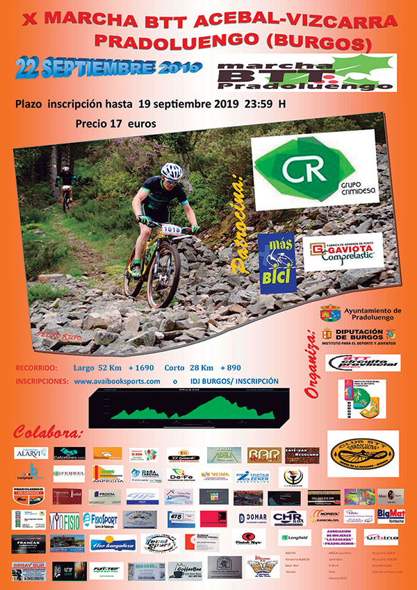 Penúltima prueba del Circuito BTT "Diputación de Burgos". Habrá dos recorridos, uno largo de 52 km. y 1.690 m. de desnivel positivo y otro corto de 28 km. y 890 m. de desnivel positivo.