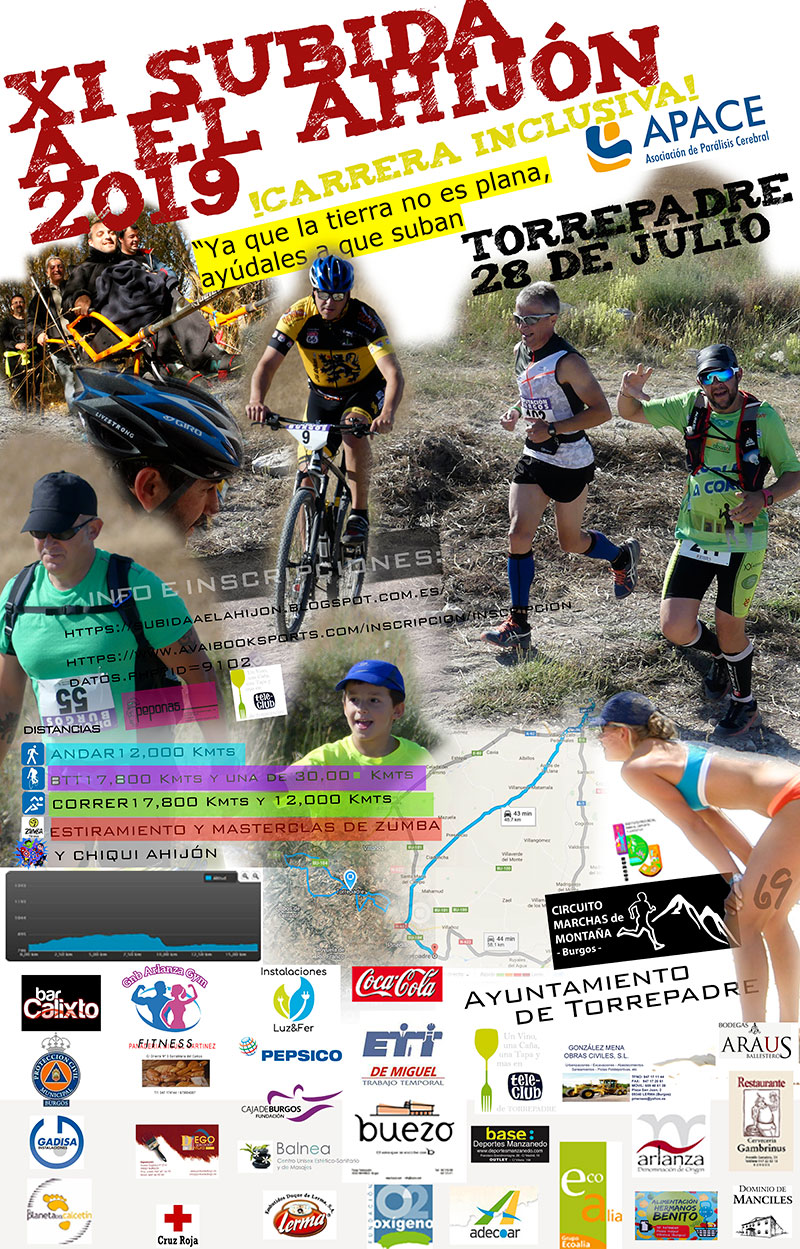EL 28 de Julio en Torrepadre, la XI Subida a El Ahijón será a favor e Inclusiva con APACE Burgos. Con esta prueba, lo que se persigue es dar visibilidad a la parálisis cerebral y afines, y acercarse a la plena inclusión.