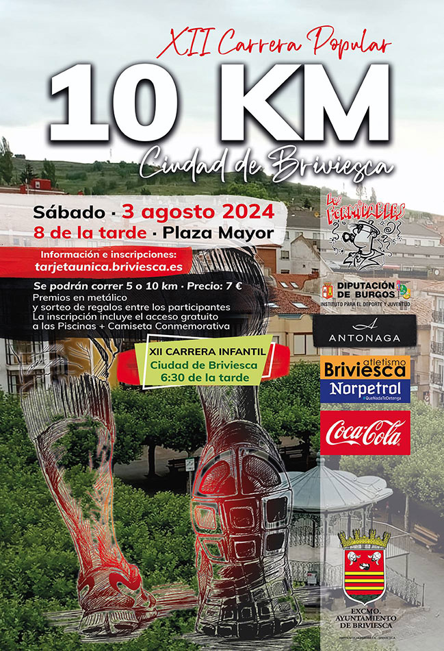XII edición de la Carrera 10 Km Ciudad de Briviesca organizada por la Asociación Cultural Recreativa Los Formidables y el Ayuntamiento de Briviesca, que forma parte del Circuito Provincial de Carreras Populares.