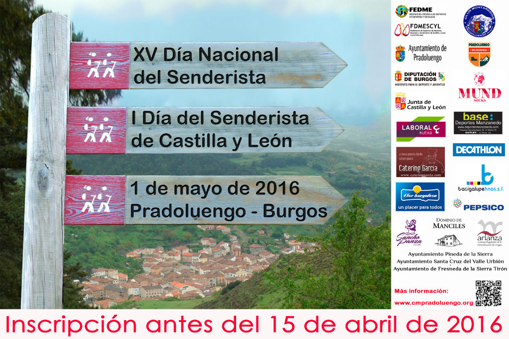 El Día Nacional del Senderista, es una actividad de la Federación Española de Deportes de Montaña y Escalada (FEDME), donde se cita a todos los senderistas para caminar en territorios de excelencia senderista de la geografía española. En esta ocasión, de la mano de la Federación de Deportes de Montaña, Escalada y Senderismo de Castilla y León (FDMESCYL), el Club Montañeros Pradoluengo ha sido elegido para organizar este evento en el año 2016.