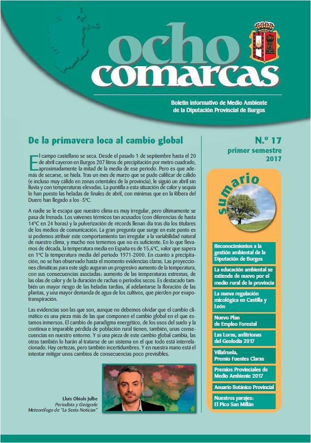 El último número del Boletín Informativo de Medio Ambiente "Ocho Comarcas", correspondiente al primer semestre del año 2017, ya está disponible con los siguientes contenidos: