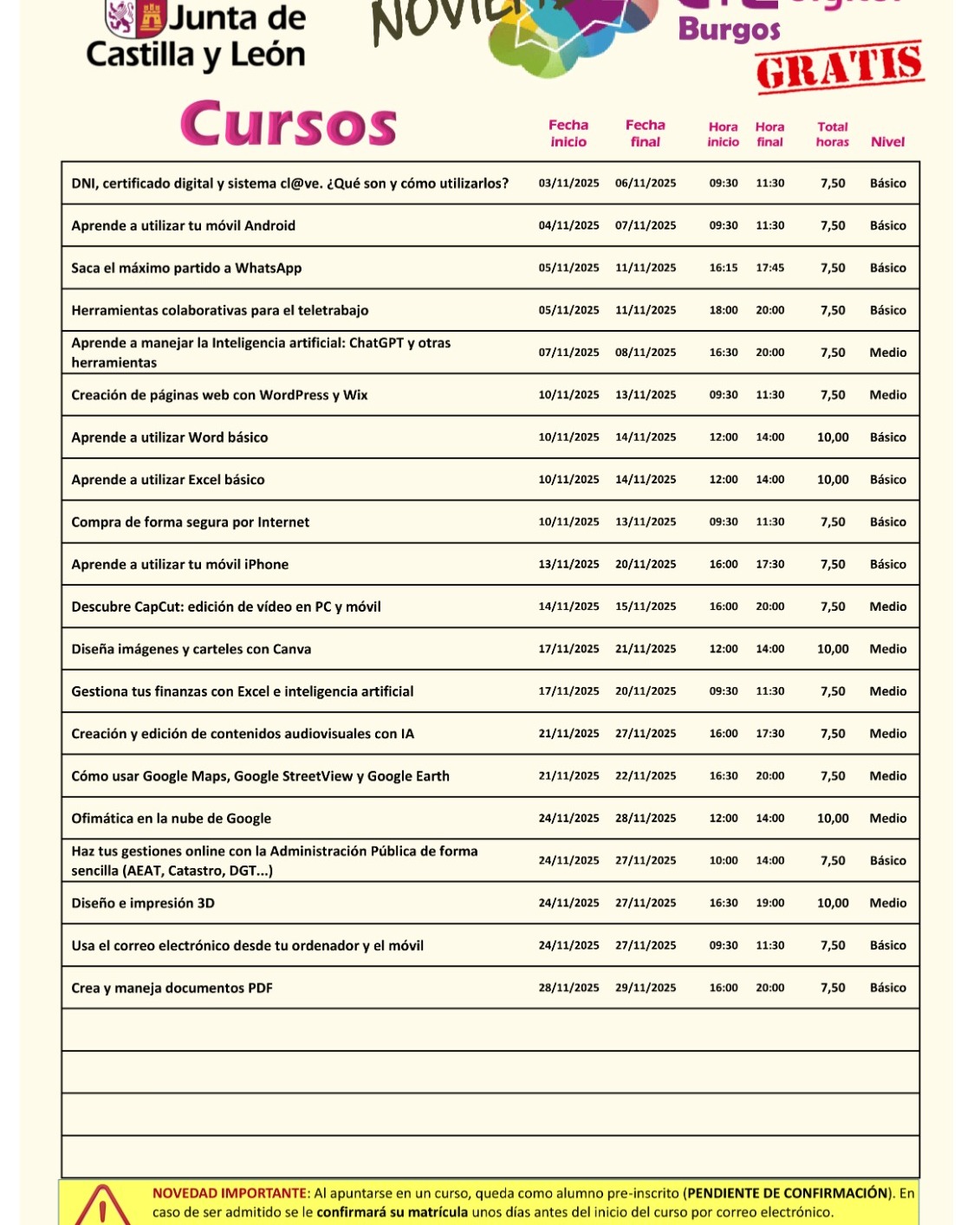 Para más información e inscripciones, selecciona Burgos el apartado de formación presencial en la web de CyL Digital que encontrarás en el siguiente enlace: "Formación presencial en la web de CyL Digital"