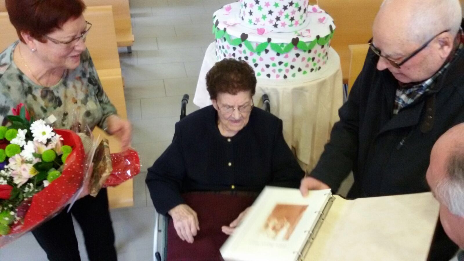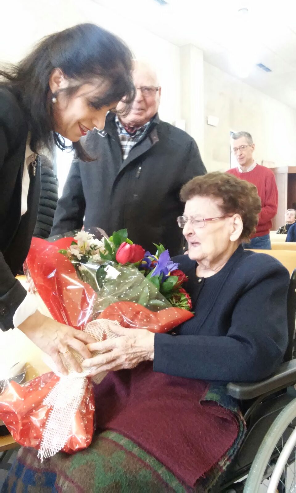 Dña. Felisa fue obsequiada con un precioso ramo de flores y varios objetos conmemorativos de su centenario que agradeció con muestras de afecto y cariño. Siendo martes de Carnaval, la celebración continuó por la tarde con baile de disfraces y degustación de chocolate con churros para todos.