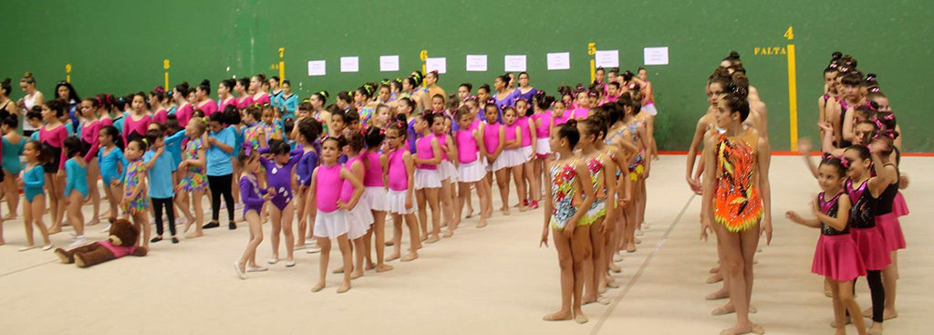 - 10:00 h. Llegada de cada localidad al frontón y a la zona del Instituto Tierra Alvar González, lugar donde las gimnastas se cambiaron y prepararon para su actuación.