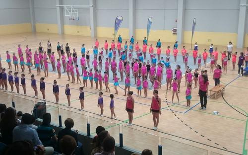 Las niñas, desde la categoría prebenjamín hasta infantil, realizaron sus ejercicios sobre el tapiz, en conjunto y algún individual, muy variados, coloridos y vistosos, alternado manos libres con pelota, cuerdas, cintas y aros. Todas ellas recibieron merecidos aplausos de un público entregado que abarrotaba la grada, además de un diploma de participación y merienda ofrecida por el Ayuntamiento de la localidad organizadora.
